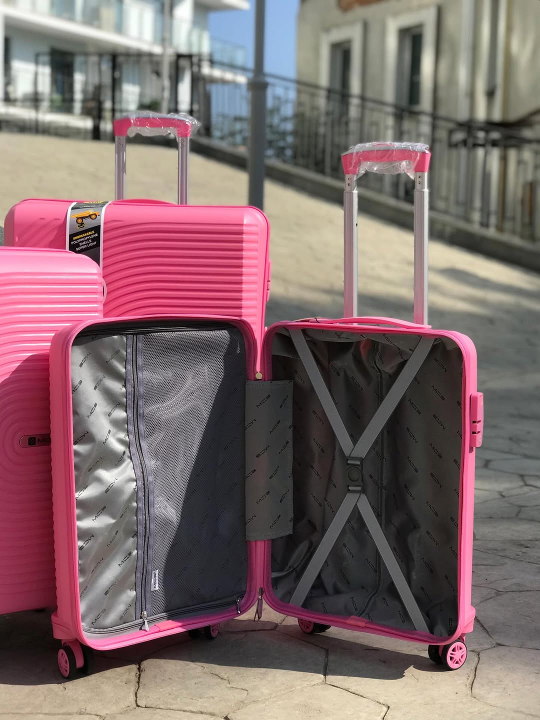 چمدان پروپلین PP مقاوم در برابر ضربه بالا ساخته شده است. چرخهای بزرگ و زرهدار دوبل و قابل چرخش هستند. در کنار چمدان یک قفل ترکیبی استاندارد پیدا خواهید کرد. فضای داخلی زیبا شامل بند هایی برای نگه داشتن لباس ها و یک جداکننده مشبک برای محفظه های اصلی است. مدل ها و رنگ چرخ ها ممکن است بدون کاهش کیفیت متفاوت باشد.