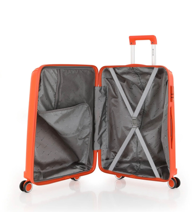 مقاوم در برابر ضربه بالا ساخته شده است. چرخهای بزرگ و زرهدار دوبل و قابل چرخش هستند. در کنار چمدان یک قفل ترکیبی استاندارد پیدا خواهید کرد. فضای داخلی زیبا شامل بند هایی برای نگه داشتن لباس ها و یک جداکننده مشبک برای محفظه های اصلی است. مدل ها و رنگ چرخ ها ممکن است بدون کاهش کیفیت متفاوت باشد.