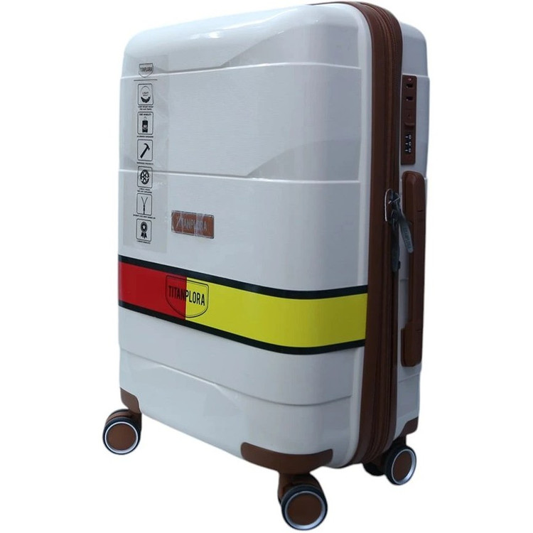 سایز کوچک برند تیتان پلورا از جنس پروپلین 100درصدنشکن با چرخ های آنتی شوک 360 و قفل TSA ضدسرقت مناسب برای اقلام ضروری خود در سفر با حجم 8 کیلوگرم 40 لیتر