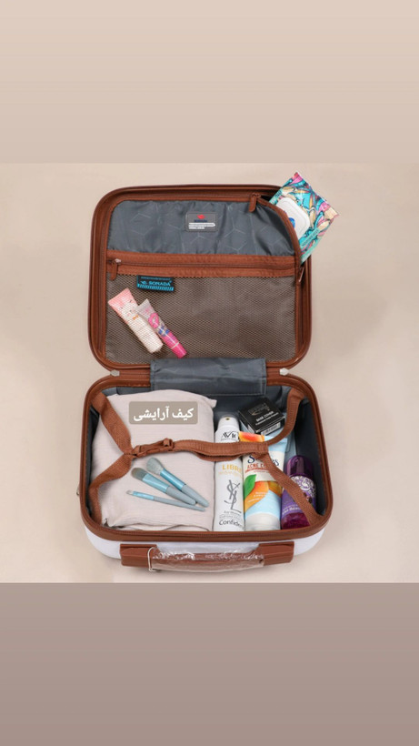 تسمه های چمدان در دو محفظه که توسط یک جیب مشبک از هم جدا شده اند