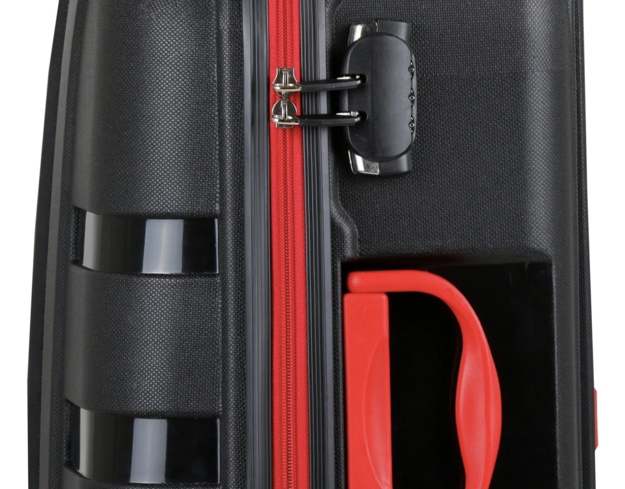 دارای یک دسته در بالای چمدان با قابلیت تنظیم اندازه به صورت تلسکوپی